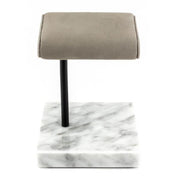 The Watch Stand is handcrafted in Europe with the finest leather and marble from Italy. Our logo is engraved on the bottom side of the stone.